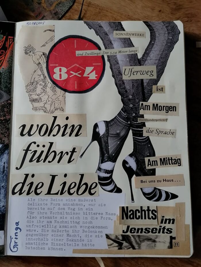 Als mein Weblog 2006 in Die Veranda umbenannt wurde, lief er ein ganzes Jahr unter dem Namen „work in progress“ – eine Reminiszenz an den Ulysses von James Joyce, aber völlig passend für meine Literatur des ewigen Tanzes, der ewigen Veränderung, aus der Fertiges nur herausgeklaubt wird, um es in Druck zu geben. Es wäre von innerer Ignoranz zu sprechen, würde ich nicht zugeben, dass ich nicht verschiedene Bücher schreibe, sondern immer wieder denselben inneren Raum zu betrete, auch wenn dieser Raum mit seinen vielen Spiegeln und Masken die Unendlichkeit markiert.