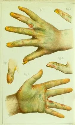 Eine andere Interpretation besagt, dass die Kinder zu der flämischen Einwanderergemeinschaft gehörten, die im 12. Jahrhundert ankam. Die Schlacht von Fornham in Suffolk, unweit von Bury St. Edmunds, fand im Oktober 1173 statt. Sie wurde zwischen Heinrich II. und Robert de Beaumont, dem dritten Grafen von Leicester, ausgetragen. Die aufständischen Truppen umfassten ein großes Kontingent von etwa 3000 flämischen Soldaten. Die Rebellen wurden schließlich besiegt und die flämischen Soldaten in die Sümpfe in der Nähe des Schlachtfeldes getrieben, wo die meisten von den örtlichen Bauern getötet wurden6. Nach dem Tod ihrer Eltern flohen die Kinder in den Wald von Thetford und verirrten sich. Plötzlich hörten sie die Glocken von Bury St. Edmunds läuten und machten sich auf den Weg dorthin, der sie zu den Feuersteinminen in der Nähe des Dorfes Woolpit führte, die als Grimes Graves bekannt sind. Die grüne Farbe rührte von einer ernährungsbedingten Mangelkrankheit wie Chlorose her, die geheilt worden wäre, sobald die Kinder nahrhaftes Essen zu sich genommen hätten.