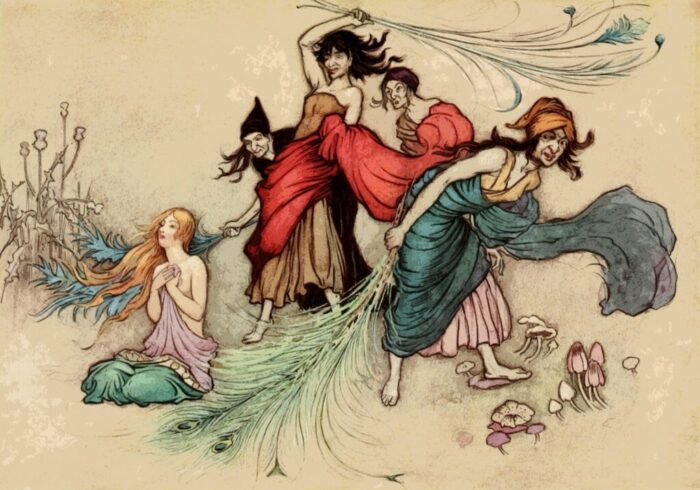 Es war seine Aufgabe, die Feenringe zu bewässern. Shakespeare erwähnt Feenzirkelpilze auch in „Der Sturm“ und weist darauf hin, dass das Gras im Inneren der Ringe für Tiere giftig ist.
