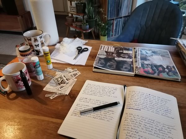Das LiveBook greift selbstverständlich auch aus den visuell gestalteten Seiten hinaus und manifestiert sich in weiteren Texten, die nicht unbedingt einen Weg ins fertige Werk finden müssen. So geschehen (unter der heutigen Arbeitsatmosphäre) beim Gespann ENDLICH SCHULD / SCHWEREMUT, wobei letzter Text in die Sammlung LOREBUCH aufgenommen werden wird.