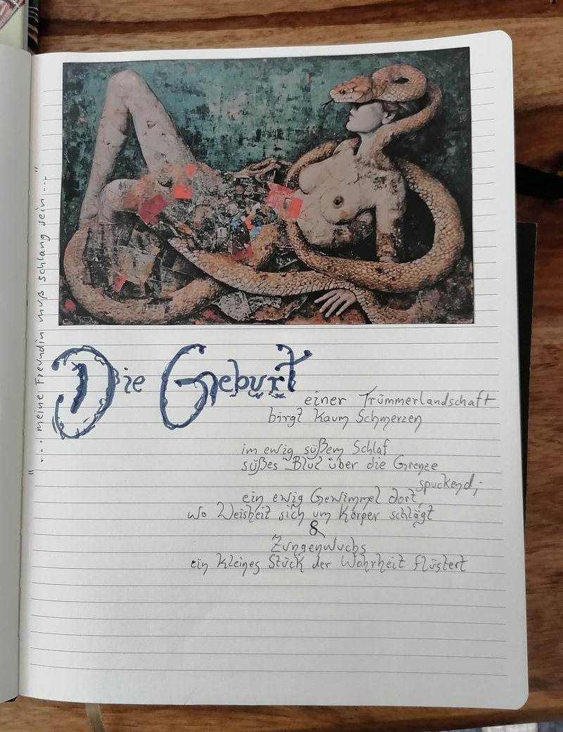 Im Gefüge herumkratzen. Es ist wie einen Körper betrachten. Es hat einen Grund, warum wir ausgerechnet diese Gestalt haben und keine andere. Wir sind immer und zu jeder Zeit, wer wir sein wollen. Und das Schöne ist: Nichts existiert wirklich, alles wird nur von Gedanken aufrecht erhalten, von unseren Beschreibungen und Erzählungen. Die aber wirken, weben also Welt.