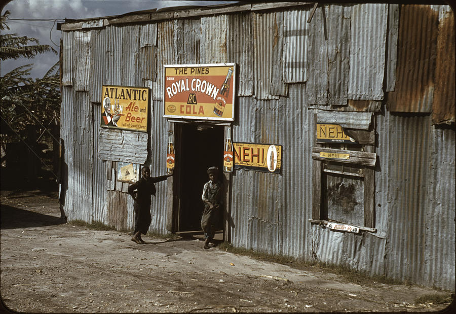 Afroamerikanischer Juke Joint, Originaltitel „Negro migratory workers by a juke joint“, von Marion Post Wolcott, Belle Glade, Florida, 1941.