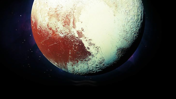 Seine Atmosphäre ist reich an Stickstoff, Methan und Kohlenmonoxid, die durch das Schmelzen der Eiskappen auf seiner Oberfläche freigesetzt werden. Die Temperatur liegt zwischen -210 und -250 Grad Celsius. Von Plutos Oberfläche aus ist die Sonne nur ein kleiner, heller Ball, kaum größer als die Sterne, die wir am Nachthimmel sehen.